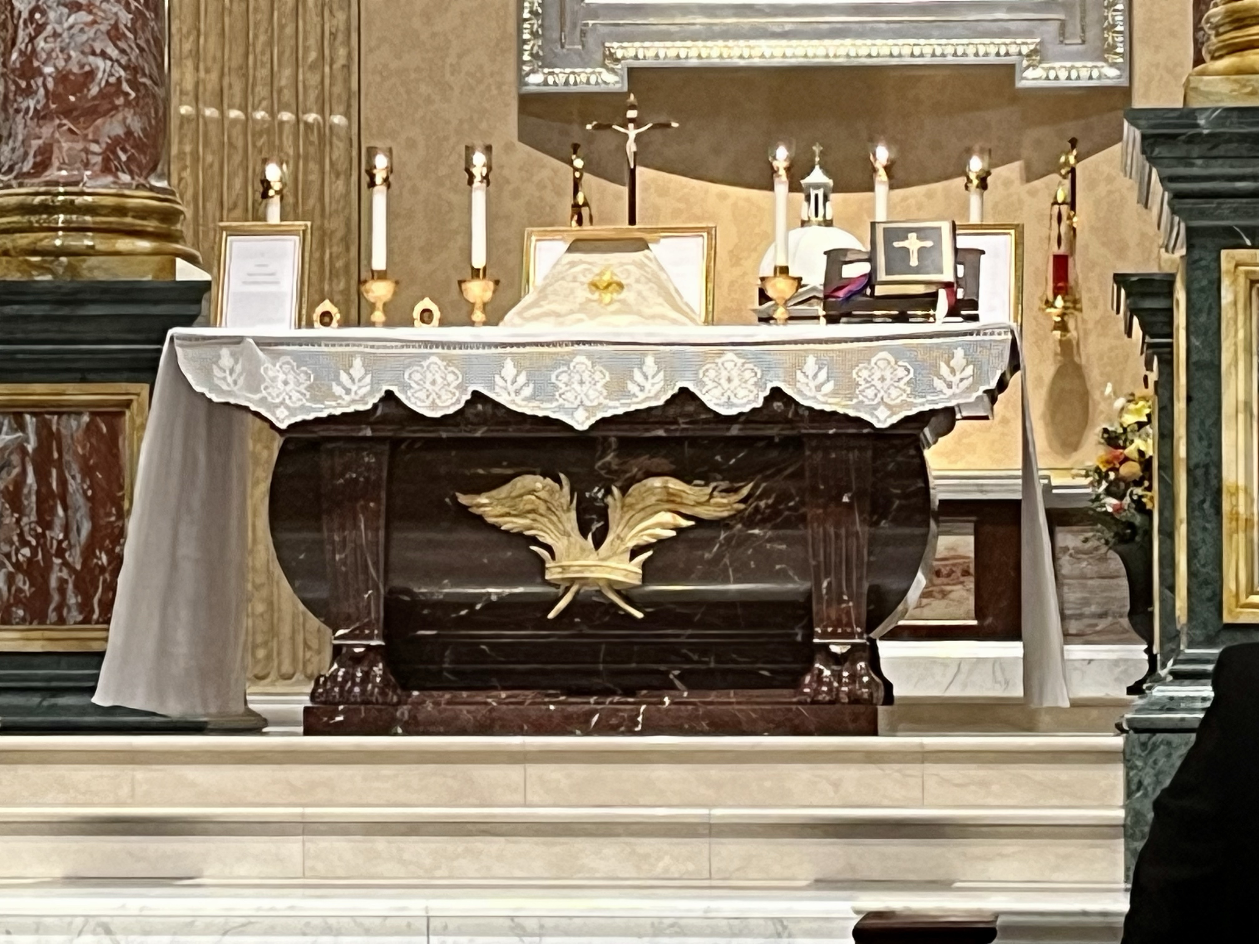 Our first time attending was Sunday, March 17, 2019 as they had 1st class relics of St Patrick on despair during and after high mass. After veneration of the relics and touching our rosaries to his relics, I stopped and prayed at every relic in the sanctuary followed by prayers in the Marian gardens and candle chapel. We had been Catholics at that point for less than a year and we had suffered with years of infertility and 4 losses. My prayer was that if it was God’s plan to just have our 2 girls then please give my heart peace and let me move on; the aching was terrible. Being in my late 30s then, I didn’t want to yearn for something that wasn’t the Will of God. I also asked that if it was His will to please spare me from another very long and difficult miscarriage. My last one left me very ill and weak for many months.